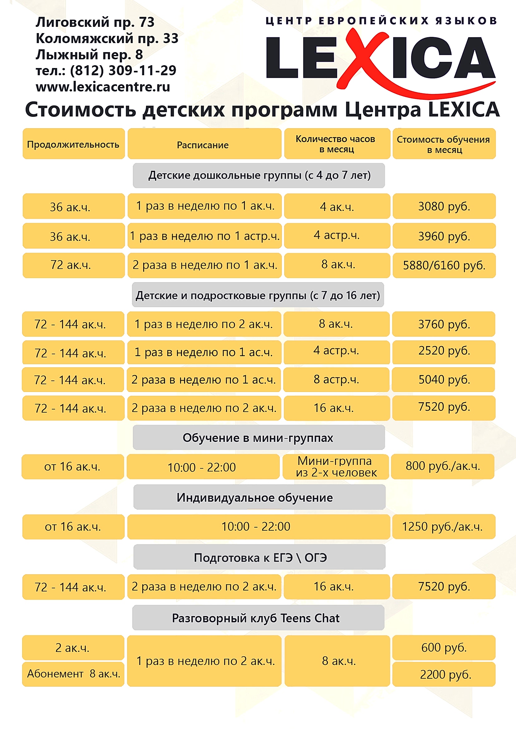 Рабочие программы ЧОУ ДО "Лексика":